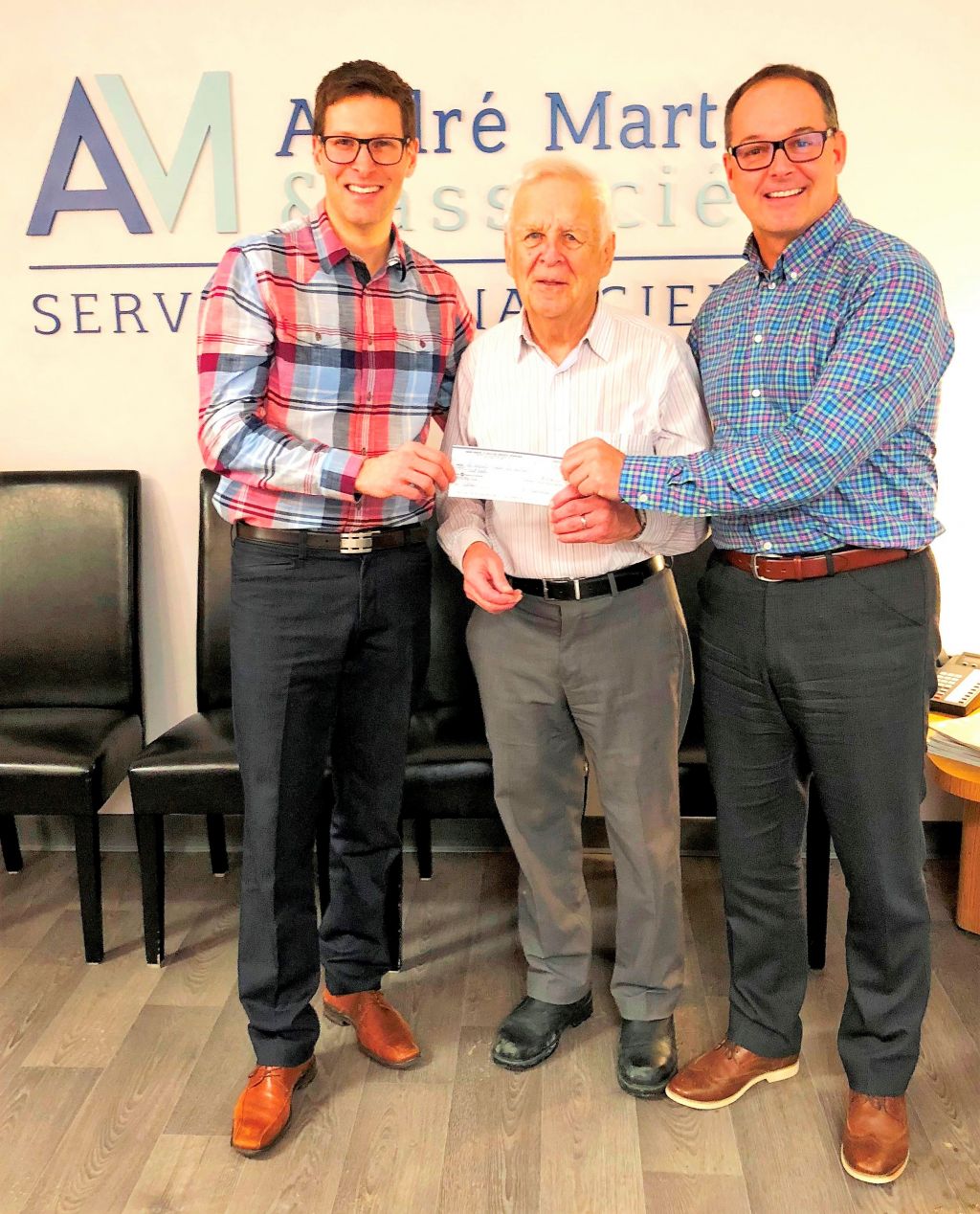 De droite à gauche, monsieur Dominic Desbiens, monsieur Laurier Savard membre de la fondation et monsieur André Martel .